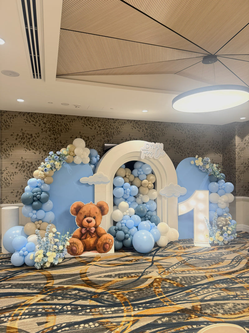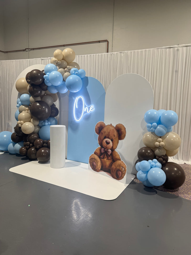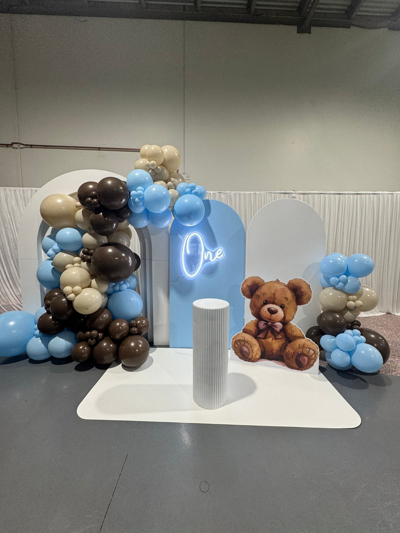 Celebrate your little one turning ONE with our charming Beary First Birthday setup – a sweet and cuddly display perfect for a teddy bear-themed celebration! Featuring soft blues, rich browns, and neutral tones, this setup is ideal for boys' first birthdays and makes a heartwarming statement for photos and cake moments. Or.. let's customise it! We can do this setup in any colour scheme you like. Send an enquiry through so we can create a beary special backdrop.