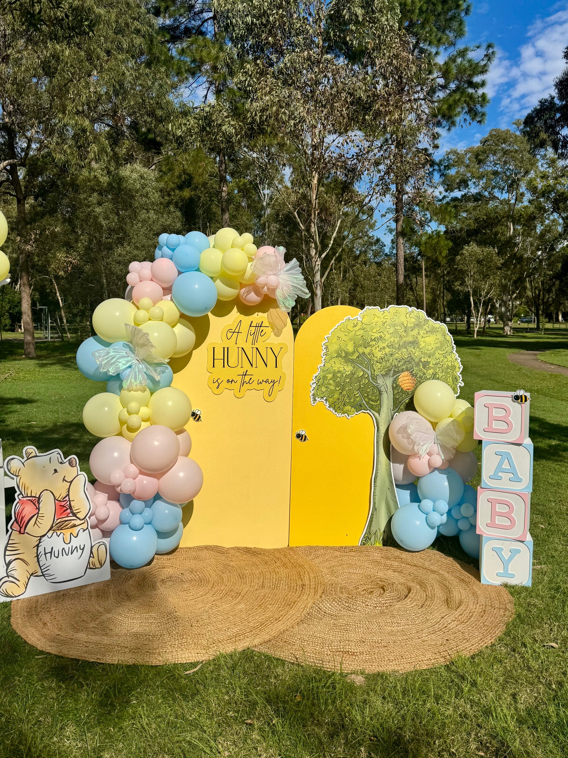 Celebrate your sweet new arrival or maybe a milestone first birthday with our Winnie the Pooh Deluxe Package. This whimsical package brings the Hundred Acre Wood to life with soft pastel tones and honey-themed details that will make your guests say oh bother… how cute!